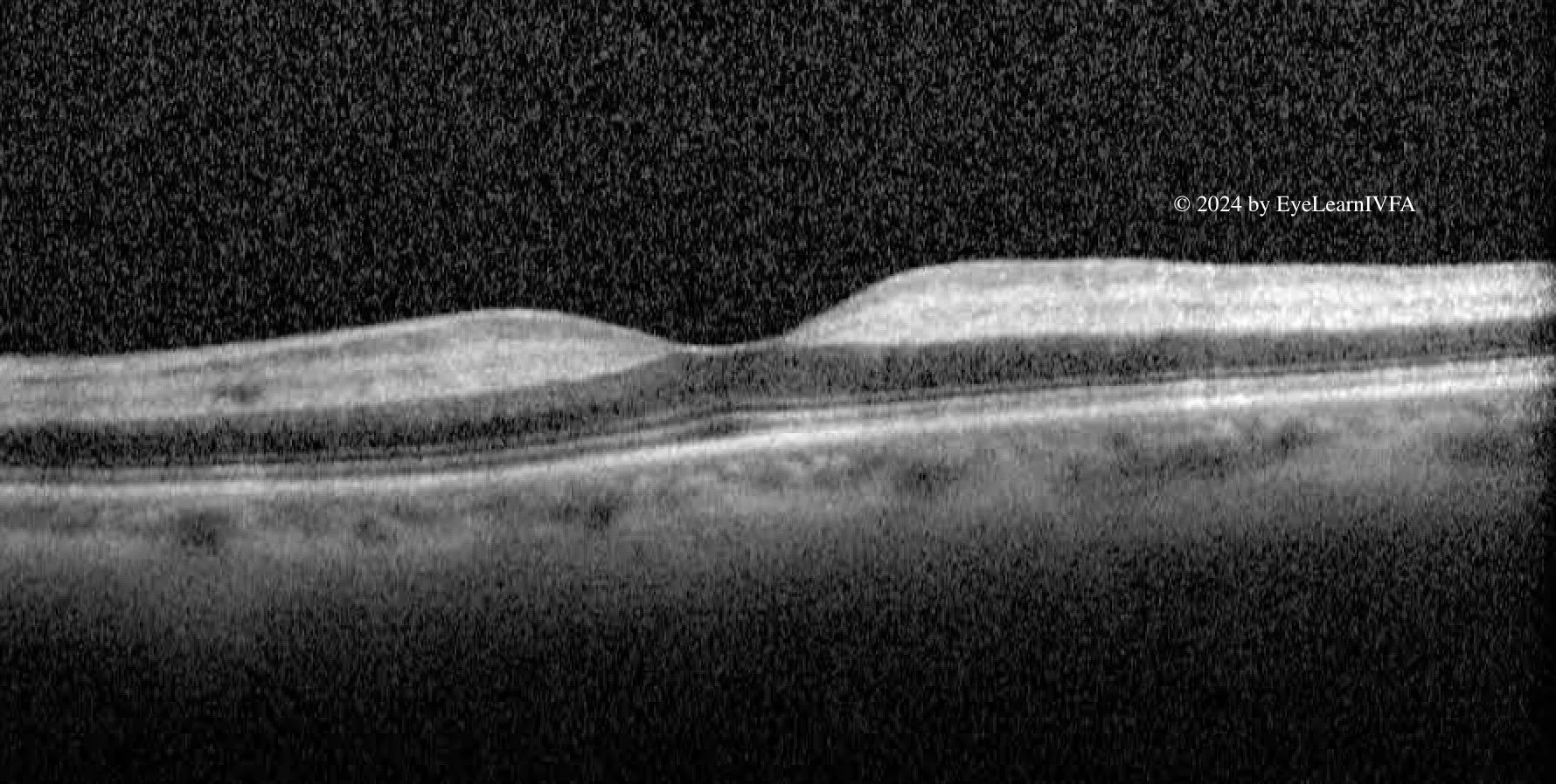 The diagnosis is arteritic anterior ischemic optic neuropathy (AAION) secondary to giant cell arteritis (GCA). IVFA shows delayed choroidal filling with prolonged arteriovenous filling - a hallmark of posterior ciliary artery ischemia in GCA. These findings, combined with sudden vision loss, proceeding jaw pain, elevated inflammatory serological markers, a hyper-reflective OCT and subtle cherry red spot on clinical examination all point towards AAION related to giant cell arteritis.